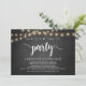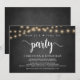 Agora é hora de festejar, Anúncio de Elopement / Convite de casamento, em quadro negro de fazenda rústica, design de luzes de corda. Isso é perfeito para o seu casamento e festa de celebração pós-casamento. Adicione seus detalhes no tipo de letra correspondente.