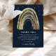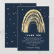Um cartão de agradecimento para enviar aos amigos e familiares que demonstraram amor e apoio durante o seu momento de luto. Apresenta um fundo azul naval meia-noite, um arco-íris abstrato dourado falso cercado por estrelas douradas e uma simples mensagem de agradecimento que pode ser facilmente personalizada.