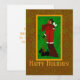 Este design de Férias funde os movimentos Art Nouveau e William Morris Arts e Artesanatos desde o início da década de 1900 em um trabalho artístico original sofisticado e na moda. Apresentando uma mulher vestida aos novinhos na sua casaco de Natal e cachecol enquanto ela caminha com seu lindo Terrier negro escocês que também está vestindo seu cachecol! Nostálgico e divertido, retrô e moderno ao mesmo tempo.