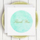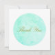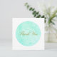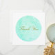 Círculo minimalista azul-turquesa com agradecimento em escrita elegante no centro