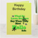 Foto: uma gracinha de grama engraçada saudando, com dentro de votos de aniversário