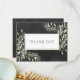 O obrigado de negócios que você primavera deixa é um cartão chalkboard. Apresentando delicadas folhas de aquarela moldando seu obrigado, você define uma mensagem em um texto elegante. Você pode personalizar com seu próprio obrigado a mensagem e o nome no reverso ou se preferir adicionar sua própria mensagem manuscrita, exclua o texto. Uma maneira excelente de mostrar sua apreciação aos seus clientes e clientes. Perfeito para uma grande variedade de empresas, incluindo estéticos, terapeutas de beleza, cosmetólogos, estilistas, salões de unhas, cabelos e maquiadores, varejo e spas.