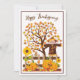 Este espantalho bonito está rodeado por folhas do outono e abóboras e um passarinho desejando uma Feliz Ação de Graças. É simples e fofo. Adicione seus próprios sentimentos na parte de trás do cartão.