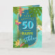Cartão de aniversário anual atraente com tema tropical. Adequado para qualquer idade.