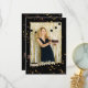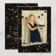 Um aniversário de foto Na frente: adicione uma foto de tamanho vertical. Uma cor de fundo preto clássica, decorada com estrelas douradas falsas. Personalize e adicione um nome e detalhes. letras amarelas.