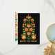 Feliz cartão de aniversário com motif folclore. As lindas cores e formas do outono das flores foram inspiradas pela arte popular polonesa "wycinanki". Perfeito por dizer FELIZ ANIVERSÁRIO a alguém que ama tradição ou folclore.
