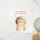 Decole para o divertimento de aniversário com este adorável cartão de saudação de astronauta! Com um gatinho de aquarela doce em um capacete espacial cercado por estrelas e planetas flutuantes, este cartão plano é perfeito para celebrar o dia especial de uma criança que ama o espaço. Com tons neutros suaves e charme lúdico, é ideal para crianças e jovens.