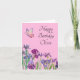 Iris Pumila flor aquarela nome cartão de aniversário em fundo rosa