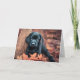 Este cartão de aniversário temático do outono apresenta um adorável filhote preto de Labrador descansando em uma pilha de folhas.