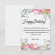 Celebrar um aniversário especial de alguém com este cartão de saudação maravilhosamente desenhado. Apresentando uma delicada fronteira floral com flores cor-de-rosa e pêssego, este cartão exude elegância e calor. A mensagem sincera deseja ao destinatário um dia cheio de alegria, risos e todas as suas coisas favoritas, juntamente com uma promessa de aventuras excitantes e memórias maravilhosas no próximo ano. Perfeito para qualquer um que aprecie o design clássico e sofisticado, este cartão certamente fará seu aniversário realmente memorável.