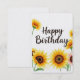 Cartão de aniversário brilhante e alegre, com flores de sol a cores, espalhando alegria e calor nesta ocasião especial!