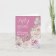 Convite de aniversário personalizável com rosas de Watercolor em tons rosa pálidos e verdes com texto branco. Correspondência de design no verso com o número de idade personalizável. dentro de vazio para a sua letra pessoal. Um convite clássico com um olhar feminino. Personalize para o seu evento especial com a sua escolha de idade, texto e cor de fundo.