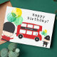 Agradecimento Cartão de Aniversário Infantil Tema Ônibus Vermelh