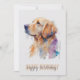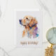 Cartão de aniversário com ilustração de um recuperador de ouro na frente. Perfeito para qualquer amante de cachorro!