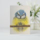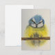 Arte original na nota com envelope. Pássaro amarelo e azul