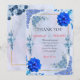 Expresse sua gratidão de forma linda com este elegante cartão de agradecimento de casamento floral azul. Com discretas flores em azul-naval e azul-pó em aquarela, este design romântico complementa perfeitamente temas de casamento clássicos e formais.