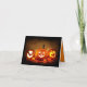 Foto bonita de três abóboras, gravadas para o Dia das Bruxas, é mostrada neste cartão de saudação. O dentro de cartas diz: "O Dia das Bruxas está finalmente aqui. Divirta-se, mas tenha cuidado, querida. Coisas assustadoras estão muito perto. Trick ou Tratar sem medo. Feliz Dia das Bruxas"! Um cartão divertido para enviar família e amigos para o Halloween!