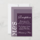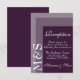 Simples cartão de cerimônia de casamento de guião chique moderna para noivas que estão adorando suas cerimônias em um estilo moderno e cor roxa. A suíte de casamento chic tem uma fonte branca moderna com monograma de iniciais ao lado.