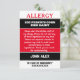 Assegure sua segurança com nosso Cartão de Chamada de Emergência do Restaurante de Alerta de Alergia Vermelha Personalizado. Essa placa pode ser editada com informações específicas sobre alergia, fazer ideal para viagem e jantar fora. Fornece detalhes cruciais sobre as suas alergias e instruções sobre como evitar a contaminação cruzada durante a preparação das refeições. Todo o texto é editável, permitindo que você adicione seu nome e informações de contato. A parte traseira da placa é clara, fornecendo espaço para você ou o funcionarios da cozinha escreverem manualmente quaisquer notas adicionais.