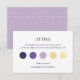 Certifique-se de que seus convidados se sintam perfeitamente vestidos para seu dia especial com este cartão de vestimenta elegante. Apresentando um delicado design de flor silvestre de cor aquática em lilás lavanda e amarelo ensolarado, este cartão inspirado no boho complementa casamentos rústicos, rurais ou de flores silvestres. A tipografia do estilo "boho" roxo na moda-escuro fornece orientação clara para o código de vestimenta, mantendo uma estética sofisticada. O verso mostra um charmoso fundo lilático-lavanda com pequenas bolinhas brancas, acrescentando um toque coeso e na moda à sua papelaria de casamento. Totalmente personalizável, este cartão ajuda a definir o tom do seu evento e garante que os convidados cheguem a um traje que corresponda à sua vibração de casamento.