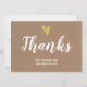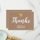 Elegante cartão de agradecimento de casamento com coração em foil dourado falso e escrita moderna em branco. A frente e o verso do cartão são em papel Kraft falso.