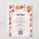 Esse chá de fraldas bonito detalha o design de um adorável quadro de morango vermelho em um branco com uma tipografia preta personalizável.