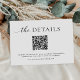 Cartão de Detalhes do Site de Casamento com QR Code Minimalista