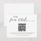 Essa bela placa de RSVP de Casamento apresenta caligrafia manuscrita com um layout minimalista para dar o tom ao seu casamento moderno estilizado! Adicione facilmente um código QR para o seu site de casamento e personalize o texto *maioria* para ajustado das suas necessidades. As cores de texto e de fundo são totalmente editáveis —> clique no botão "Editar usando a ferramenta Design" para editar!