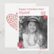 Capturar a essência do amor com o nosso cartão de Dia de os namorados personalizado de 'Corações Adoráveis'. A frente mostra uma fotografia a preto-e-branco enfeitiçada com tons mais escuros de corações pintados a aquarela rosa, definindo um tom eterno e romântico. Personalize o cartão com 'Feliz dia de os namorados', a data, e um nome em uma matiz cor-de-rosa profunda, espelhando os tons dos corações. As costas estão lindamente decoradas com os mesmos corações encantadores. Adicione a sua foto especial para fazer deste cartão um bem-estar apreciado, expressando sua história de amor única.