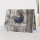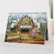 Grande Cartão de Feriado de Natal Evergreen. Belo celeiro histórico com um vidro manchado de século adorando a frente. Decorado para a diversão de Natal e Feriado para amigos, família e casamentos no inverno. Caminhão de safra chega com árvores e presentes para o dia especial. Buffalo e Yak ficam na neve a distância. O cartão-presente de dentro tem vidro colorido e madeira de celeiro com um quadro para a sua mensagem de Natal. Use a mensagem existente ou personalize o cartão com sua própria mensagem e o nome da família ou da empresa. Feliz Natal!