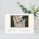 Celebre seu momento especial com este anúncio elegante de noivado e modelo de cartão de festa, com uma bela foto do casal feliz e uma fina e refinada borda para um toque moderno. O design destaca "Engaged" em uma sofisticada camada de script de efeito ouro, balanceando perfeitamente o romance e o estilo contemporâneo. Personalize facilmente a mensagem, os nomes e a foto para tornar este cartão exclusivamente seu, criando um convite sincero que dá o tom para sua celebração alegre.
