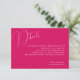 O cartão de cerimônia de casamento Peony Elegance apresenta uma paleta rosa e branca, corajosa e tenra, com sofisticada arte de linhagem de peonias, criando um design impressionante, mas elegante. A combinação dessas cores adiciona um senso de brincadeira, alegria e vibes tropicais, estabelecendo o palco para uma celebração tão memorável quanto vibrante. Este cartão é perfeito para os casais que querem abraçar o espírito do Verão de uma forma divertida e viva. Minimalista e refinada, essa carta incorpora sofisticação química com um talento artístico. Perfeito para uma comemoração moderna e em escala alta.