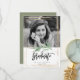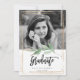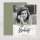 Um belo quadro de ouro falso com cartão com fotos de graduação em acentos verdes, com coordenação do lado inverso. Fácil de editar ou excluir os campos de texto disponíveis para personalizar as informações com seus próprios detalhes e adicionar uma foto especial para um acabamento profissional e personalizado. Muitos itens correspondentes nesta coleção floral de pincéis. Por favor, visite meu compro para ver a faixa de cheios. Também estão disponíveis convites, adesivos e outros produtos.