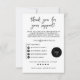 Eleve sua marca incluindo um cartões de agradecimentos de inserção de encapsulamento com seus pedidos e mantenha-os voltando repetidamente - pequenos detalhes importam! Atrair clientes repetidos dizendo que você está obrigado e oferecendo um código de desconto. Perfeito para qualquer empresa, grande ou pequena, mas especialmente para aqueles que apreciam design simples mas brincalhão. O modelo de cartões de agradecimentos comercial é fácil de usar e é completamente personalizável com o Zazzle com controle de cheio sobre cores e fontes.