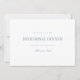 Este elegante script azul empoeirado e cartão de ensaio branco apresenta um script moderno e texto limpo para um design simples e na moda que você vai adorar. Adicione texto personalizado para fornecer qualquer informação adicional necessária para seus convidados. Sinta-se à vontade para me enviar mensagens com qualquer pergunta relacionada a design - terei todo o prazer em ajudar!