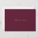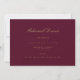 Este elegante guião dourado e cartão de ensaio burgundy apresenta um guião moderno e texto limpo para um design simples e na moda burgundy que você irá adorar. Adicione texto personalizado para fornecer qualquer informação adicional necessária para seus convidados. Sinta-se à vontade para me enviar mensagens com qualquer pergunta relacionada a design - terei todo o prazer em ajudar!