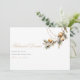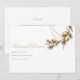 Este elegante cartão de janto de ensaio floral e ornamentação de Natal apresenta um simples fundo branco, flores e folhagem de cor de água festiva, bolas de ouro de Natal e um elegante modelo de casamento que é fácil de personalizar.
