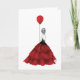 Um belo cartão de saudação ilustrado, adequado para qualquer ocasião. Este cartão tem uma garota desenhada à mão segurando um balão e vestindo um vestido floral.