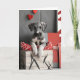 Cartão de Dia de os namorados Wolfhound Puppy. Fofinho canino contra fundo contemporâneo em vermelho, preto e branco. Sem flores, apenas corações e bolsas de beleza. Dentro é vazio deixado para sua própria mensagem.