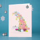 Uma saudação de Natal Feliz e um gato giro brincando numa árvore de Natal.
