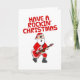 Este cartão de Natal apresenta Papais noeis tocando guitarra elétrica e o texto, "Tenha um Natal Rockin'"! Perfeito para guitarrista, professor de violão, músico ou amante de música em sua vida!