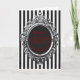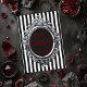 Cartão de Natal Sinistro. © Dark Heart Desires. Este Cartão de Natal é listrado em preto e branco com uma moldura prateada. Dentro da moldura há um fundo preto e as palavras Tenha um Natal Sinistro em vermelho. Está em branco por dentro para que você possa adicionar suas próprias mensagens de Natal.