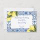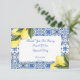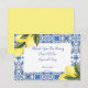 cartão de agradecimento para chá de noiva de limoncello em tons amarelos e azuis.