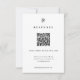Este cartão de resposta preto e branco apresenta um design limpo e minimalista com um código QR moderno para respostas online fáceis. Perfeito para casamentos formais e black tie, este cartão de resposta elegante mantém seu conjunto harmonioso e oferece aos convidados uma experiência simples de scan para responder. O estilo monocromático atemporal combina perfeitamente com convites de casamento elegantes e clássicos.