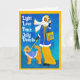 Feito em uma ilustração do estilo art nouveau, esta chic bem vestida caminha com o Doodle Dog igualmente bem vestido. Ela carregar uma bolsa de compras de Hanukkah e segura uma rosquinha de gelatina em sua mão. Ao fundo está uma paisagem urbana de arte deco com leves nevões descendo. Este cartão pode ser adquirido como está ou personalizado com sua própria mensagem e nome.
