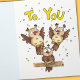 Mande a alguém este cartão de coruja fofo para lhes desejar um Feliz Aniversário! Uma na frente há três corujas, cada uma delas em uma ramificação diferente, em frente a um céu azul. O primeiro está cantando "Hoo-ppy" (feliz com sotaque rude), o segundo está cantando "Aniversário". O terceiro parece intrigado e pergunta "para quem?". Um na dentro do cartão, as outras duas corujas subiram no ar, gritando "Para você!". A terceira coruja está abaixo deles, rindo de orelha em orelha.