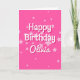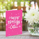 Esta carta de boas-vindas de aniversário divertida apresenta um fundo rosa brilhante com estrelas e tipografia inspirada no retrô. As costas têm a mesma cor rosa brilhante e o mesmo padrão estelar. A aparência é divertida, feminina e feliz - veja a coleção de itens coordenadores!