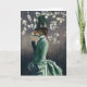 Este cartão é ilustrado com uma vírgula vitoriana num vestido robusto contra um fundo de magnólias.