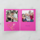 Um unicórnio bonito em fundo rosa com duas fotos da família para segundo aniversário de uma menina com seu desejo e personalizar fotos da família