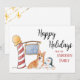 Este corgi alegre não podia esperar que Papais noeis chegassem, então ele partiu para o Polo Norte procurar sua parte de presentes, mas encontrou um pinguim cheio de espírito de feriado! Personalize facilmente este cartão de férias com o nome da sua família e com uma saudação própria.